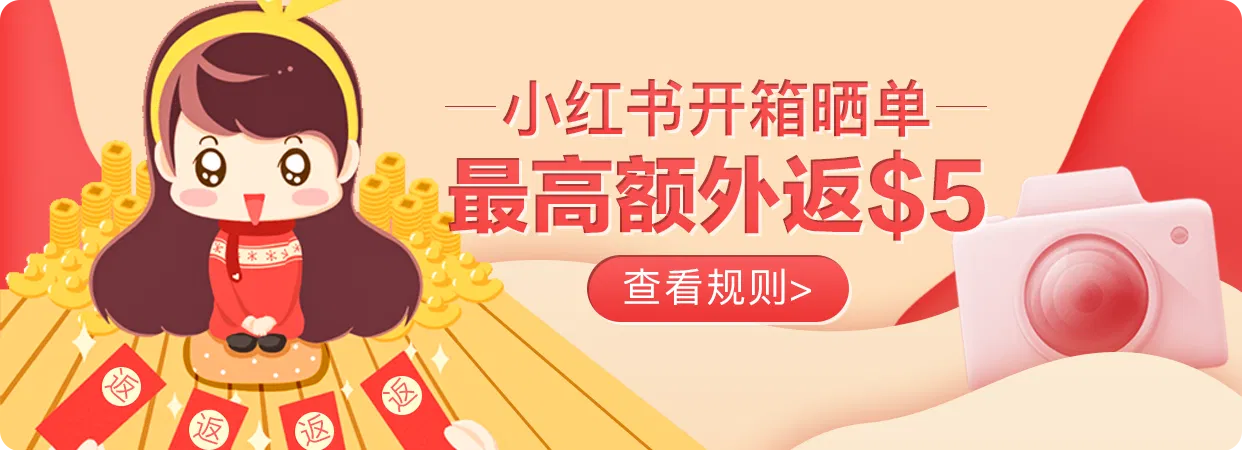 小红书平台开箱晒单最高额外返$5