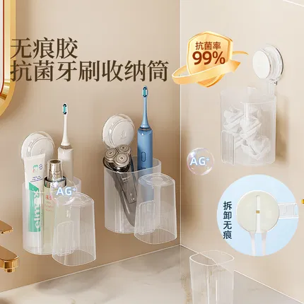 TAILI太力 无痕胶系列 抗菌牙刷收纳筒 含漱口杯