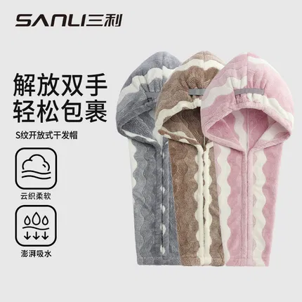 SANLI三利 简约经典S纹开放式干发帽 多色选