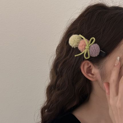 韩版毛绒圆球蝴蝶结鸭嘴夹 多色选