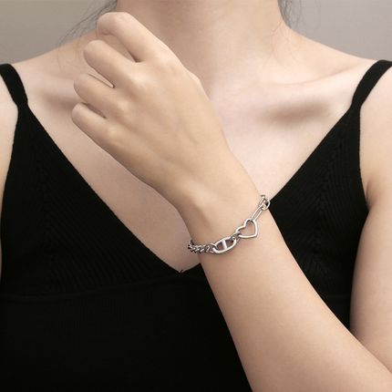 小众设计爱心猪鼻子钛钢拼接手链 2款选