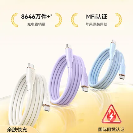 ANKER安克 亲肤硅胶快充数据线 Type-C to Type-C 0.9m 240W 多色选