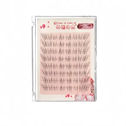 萌睫尚品 胶水款嗲精兔兔透明梗单簇分段式假睫毛 下睫毛 10排